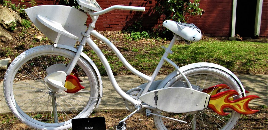 White bicycle with fire