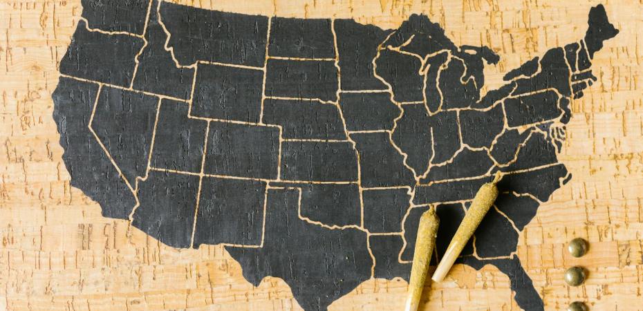 in middle an outline of the states