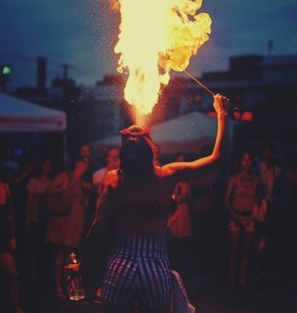 The fire burns